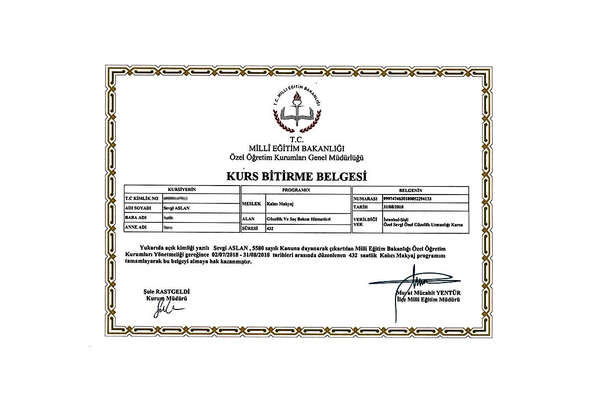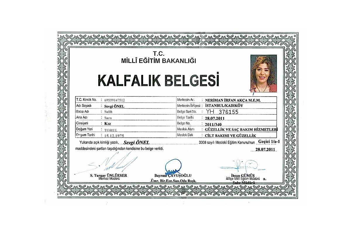 Kurucumuz Sevgi Önel, makyaj ve kalıcı makyaj alanındaki 21 yıllık tecrübesiyle, 2014 Yılında M.E.B Sevgi Önel Güzellik Uzmanlığı Kursu‘nu kurarak güzellik ve bakım sektörüne, farklı alanlarda değerli uzmanlar yetiştirmeye başlamıştır.